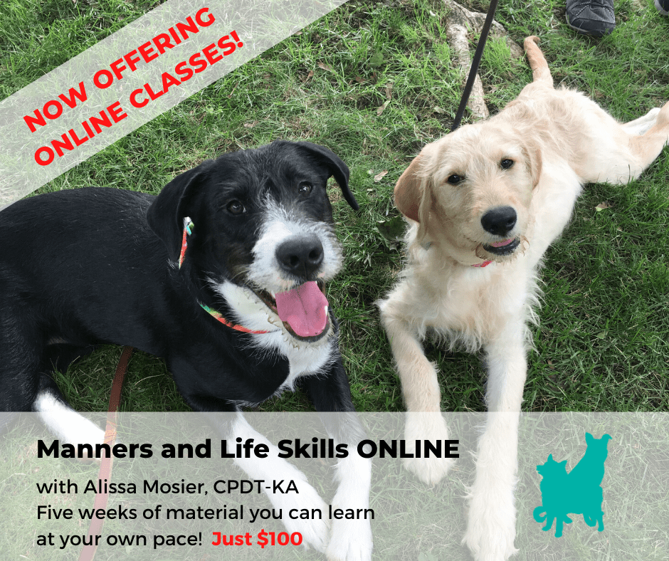 Using videos and written instructions broken into five units, Manners and Life Skills for your Dog offers an introduction to your basic skills like sit, down, stay and recall and more advanced skills like Go to Mat, Leave It, Trade, Doorways and more. We also introduce early loose leash walking skills.